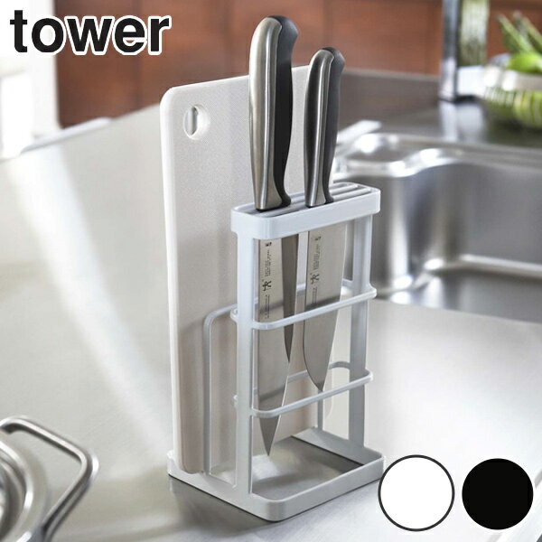 カッティングボード&ナイフスタンド タワー tower ( まな板スタンド 包丁スタンド まな板立て 包丁立て 包丁ホルダー まな板置き まな板ホルダー キッチンツールスタンド キッチン収納 山崎実業 yamazaki )【5000円以上送料無料】