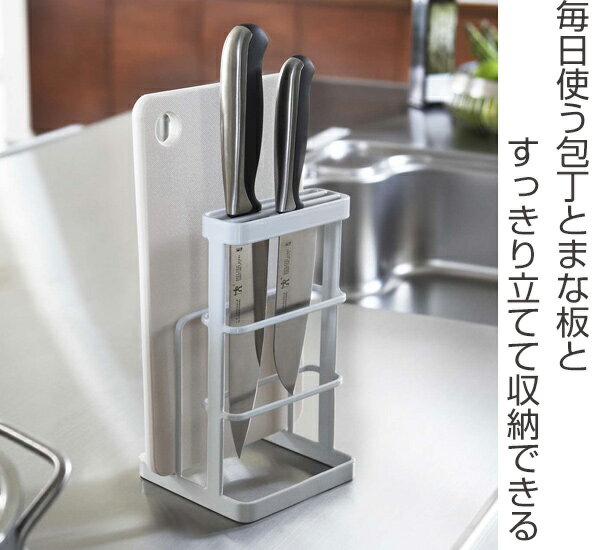 【対応サイズ】まな板:厚み約1.4cmまで2枚収納可能包丁:刃渡り約20cmまで収納可能水周りでも安心して使えるスチール製のフレームには水や汚れに強い粉体塗装を施しており、丈夫でサビにくく、水周りでも安心して長くお使いいただけます。